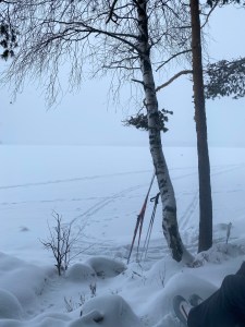 Ho ligg der ligg i snøen og ser alle desse som ikkje berre var fødd med ski på beina, men som aldri tok dei av, vinter etter vinter. Ho ser kor dei kosar seg.